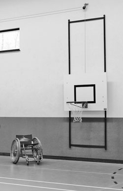 op de valide sporters. Daarom biedt Nijha een basketbalinstallatie waarbij het