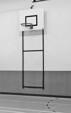 bewegingsonderwijs en bij basketbalverenigingen als oefensituatie. Bord, ring en