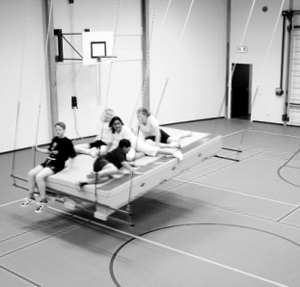 Veiligheid in een gymles wordt ook bepaald door de wijze waarop de lesgever de materialen inzet. Als de instructies van de inrichter opgevolgd worden, dan kan er In de nieuwe universele hijsunits prima gezwaaid worden op grote schommels. Als handreiking voor gebruikers heeft Nijha het werkboek ‘Gymvaria/KBS’ gemaakt. Daarin staan tal van bewegingssituaties waarin ook is aangeven wat de maximale belasting is.