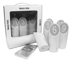 VariatiesOmdat Kubbspel een spel is voor jong en oud, zijn er vele variaties in maatvoering en materiaalgebruik. Het meest duurzaam is de variant in rubberhout. Om jonge kinderen te interesseren voor Kubbspel is er ook een nummervariant. Een eenvoudiger variant waarbij de nummers op de kubbs voor kinderen extra stimulerend zijn.