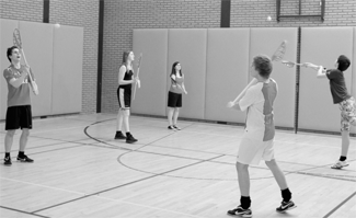 Lacrosse in het onderwijsDe groei van Lacrosse op High Schools en Colleges in de Verenigde Staten geeft wel aan dat het een sport is die prima aansluit bij de hedendaagse jeugd. Voor een goede introductie zijn echter wel een aantal aanpassingen nodig. De sticks waarmee gespeeld wordt op scholen zijn korter dan de wedstrijdsticks en de bal is wat zachter. Het aantal spelers in een team varieert en is afhankelijk van het spelniveau én de beschikbare ruimte. Er kan gescoord worden in een doel, tegen een mat of door een medespeler van het eigen team in een doelgebied aan te spelen. Bij oefenvormen in de zaal zijn turnmatten, landingsmatten, springkasten en wandrekken prima inzetbaar bij mik- en doelvormen.