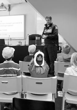 Ondertussen is het leercentrum in Zwolle al druk bezig met het zoeken naar die derde geldstroom. “We moeten namelijk wel zorgen dat we onze exploitatiekosten kunnen blijven bekostigen”, zegt centrummanager Sjaak Wilke. “We werken nu bijvoorbeeld nog in het perscentrum van PEC Zwolle, maar we zijn eigenlijk wel toe aan een eigen locatie waar we sponsoren uit kunnen nodigen. We willen die derde geldstroom geleidelijk op gang brengen.”