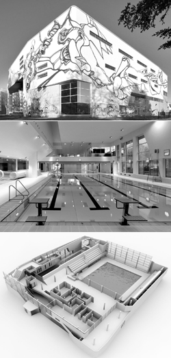 In Tilburg-Noord is het architectonisch zeer opvallende Sportcomplex Drieburcht sinds 21 december jl. geopend voor het publiek. Het gebouw is ontworpen door VenhoevenCS architecture+urbanism. Op de website van dit architectenbureau wordt de atmosfeer van het gebouw omschreven als 'urban theatre'.