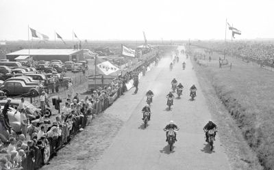 de TT van Assen. Ook Piet Knijnenburg deed mee, de winnaar van 1946. In die