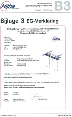 • De laatste inzichten op het gebied van veiligheid zijn doorgevoerd, zowel voor gebruikers als installateurs en inspecteurs. Zo zijn er bijvoorbeeld eisen aan het spanningsvrij maken van het toestel bij inspectie. Zo wordt er altijd veilig gewerkt.