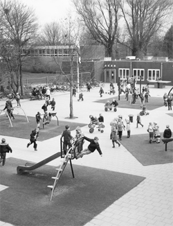 Het ministerie van OC&W hanteerde tot 1997 het ‘Wenkenblad’ uit 1986 met een overzicht van de geldende normen in het basisonderwijs. Het speelplein heette toen nog ‘speelgebied’ en daarvoor gold het volgende: ‘Het speelgebied bestaat uit een verhard en een onverhard gedeelte in de verhouding 2:1, waarbij het verharde deel een oppervlakte heeft van tenminste 300 vierkante meter.’