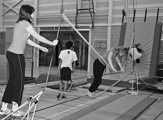 Welke keuzes maken?Zoals gezegd is het bewegingsonderwijs veranderd en ook de wereld van sport en bewegen staat verre van stil. Dat vraagt om een aantal keuzes. Want niet alleen de plaats en het aantal vaste toestellen is belangrijk, maar ook de soort en uitvoering van materialen. Een gymzaal waarin ook freerunning en teamopdrachten rond survival plaatsvinden, vraagt om andere keuzes dan een zaal waarin nadruk ligt op sportspelen en turnvormen. Het is dus belangrijk bij de hedendaagse gymzaalinrichting voor onderwijsgebruik goed te kijken naar de uitgangspunten en toekomstvisie van het bewegingsonderwijs van de scholen die gebruik maken van de zaal.