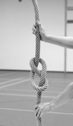 In veel sportaccommodaties hangen touwen met knopen erin. Regelmatig laten gebruikers deze per ongeluk in de touwen zitten. Een verkeerde knoop in combinatie met intensief gebruik heeft als resultaat dat de knoop er niet meer uit kan. Daarom wordt het leggen van knopen in touwen vaak helemaal verboden door beheerders of sporthalmanagers. Maar er zijn alternatieven.