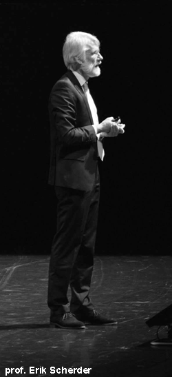 “Het fitte brein is een brein dat de hele dag wordt uitgedaagd”, zegt prof. Erik Scherder. “Er moeten elke dag zaken zijn waarvoor je je moet inspannen. Dat geldt ook voor je lijf, anders word je een dikzak.” Bewegen is goed voor de fysieke conditie maar ook voor een fitter brein, zo betoogt de hoogleraar klinische neuropsychologie aan de Vrije Universiteit van Amsterdam. “Je moet minimaal een half uur per dag bewegen.” Zelf voegt hij de daad bij het woord door tijdens het interview met Sport Knowhow XL te fietsen op een hometrainer achter zijn in hoogte verstelbare bureau. Samen met collega-wetenschapper Dick Swaab en oud-topschaatser Ard Schenk reist Scherder het land door om de boodschap van Het Fitte Brein te verspreiden.