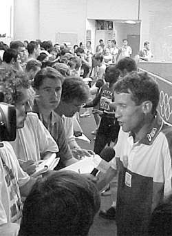 En liefst een beetje snel, want de ONS heeft de lat hoog gelegd. “We willen een kwartier na een wedstrijd bruikbaar materiaal op het intranet hebben”, vertelt Leo. “In elk stadion hebben we een eigen persruimte. Daar maken we per wedstrijd een kort verslag, we verwerken er de ‘flash quotes’ van deelnemers en sturen de kopij door naar het Main Press Centre. Daar wordt de tekst geredigeerd en op het infosysteem gezet.”