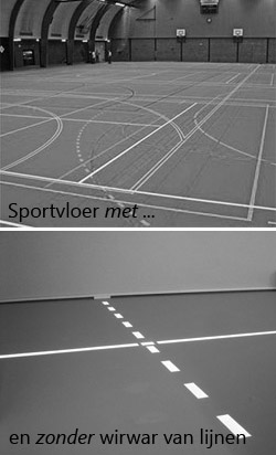 Vier jaar geleden was Jeroen Bontenbal, salesmanager van Descol Sportvloeren, de sportvloerbelijning helemaal zat. Van die wirwar van lijnen op de vloer van een sporthal kon toch niemand wijzer worden? “Ik was tijdens een wedstrijd aanwezig en zag dat niet alleen de sporter, maar ook de toeschouwer in de war raakte door de vele lijnen. Een groene, een blauwe, een rode, de één voor voetbal en de ander voor korfbal. Alles liep kriskras door elkaar heen. Die sportvloerbelijning moet beter kunnen, vond ik”, aldus Bontenbal.