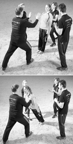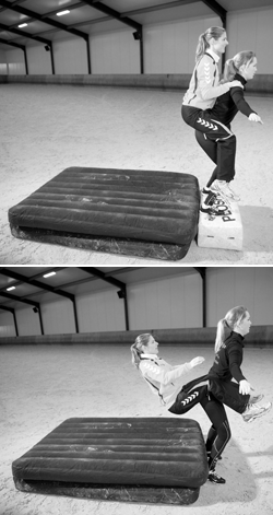 De valoefeningen uit het lespakket, die zijn samengesteld door docent bewegingsonderwijs en valpedagoog Yos Lotens, zijn gebaseerd op het lespakket ‘Vallen is ook een sport’ voor het basisonderwijs. “Uit effect-onderzoek van VUmc-EMGO blijkt dat kinderen die de valtraining in het basisonderwijs hebben gevolgd bij een val vijftig procent minder kans op letsel hebben. Een vergelijkbaar effect mag je ook binnen de paardensport verwachten als ruiters leren vallen. Als je weet hoe je moet vallen, kun je blessures helpen voorkomen, waar maakt dan niet uit. Hoe vaker je oefent, hoe groter de kans dat je bij een onverwachte val goed terechtkomt,” zegt Goossens die erop wijst dat je bij het vallen de kracht over een zo groot mogelijk oppervlak moet zien te verdelen. “Zorg dat je bijvoorbeeld de klap niet met je handen opvangt, maar met je hele arm. Zo breek je minder snel iets.”
