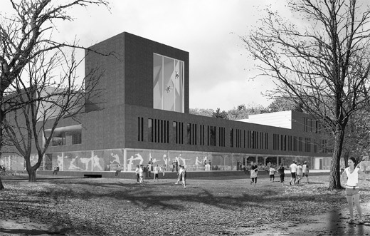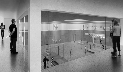 In het complex van Fontys Sporthogeschool, dat ontworpen is door architectenbureau Mecanoo uit Delft, zullen maar liefst vijf sportzalen komen te liggen. Deze sportzalen, die volgens het ontwerp op de eerste verdieping worden geplaatst, zullen vanaf de volledig transparante begane grond goed te zien zijn. “Vanuit de entreehal, het restaurant, verschillende studieplekken én vanaf buiten kan in de sportzalen gekeken worden”, licht Dick de Geus van de gemeente Eindhoven toe. “Het ontwerp draagt hierdoor bij aan de levendigheid van Genneper Parken. Doordat het complex bovendien in de weekenden en avonduren door sportverenigingen en particulieren gebruikt zal worden, zorgt de transparantie van het gebouw tegelijkertijd voor sociale veiligheid.”