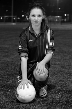 De teams die zij voor haar project heeft geselecteerd zijn allemaal C1-elftallen. “In eerste instantie wilde ik B1-elftallen fotograferen, maar de C-junioren zijn net pupil-af en beginnen met het juniorenvoetbal. Dat is de gemiddelde leeftijd van het jeugdvoetbal en daarmee representeert de C-jeugd het gehele jeugdvoetbal.” In haar foto’s wil Bakker vooral het gevoel van trots en saamhorigheid naar voren laten komen. Dat doet zij door alle aanvoerders bij donker te fotograferen in de lichten van hun eigen veld, waardoor ze in de spotlight komen te staan. "Bovendien laat ik ze recht in de camera kijken. Dat levert sterke en trotse portretten op.”