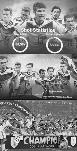 Wereldvoetbalkampioen Duitsland maakte er dankbaar gebruik van: SAP Match Insights. De Duitse IT-gigant SAP ontwikkelde samen met de Duitse voetbalbond DFB in de aanloop en tijdens het WK Voetbal in Brazilië een data-analysesysteem, waarmee de coaches al tijdens de wedstrijd op grond van statistische informatie tactisch kunnen ingrijpen. “Natuurlijk is Duitsland niet alleen dankzij dit systeem wereldkampioen geworden”, zegt Jan-Willem de Koster, Business Development Manager bij SAP Nederland. “Maar het heeft er wel aan bijgedragen.” SAP ging onlangs een samenwerkingsverband aan met Panasonic en beide partijen hebben gepland om het systeem in het tweede kwartaal van 2015 op de markt te brengen voor voetbalclubs.