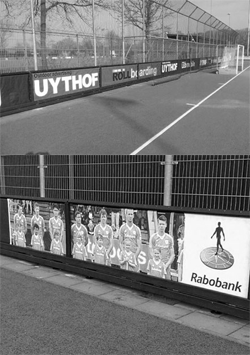 Bij WK hockey geen rollboardingDe rollboarding van Kampong kan twintig verschillende doeken van twee keer 24 meter tonen. “We hebben nu al acht doeken in gebruik”, verteld Lokerman. “Rabobank heeft een groot doek van 48 meter om de campagne ‘Hockey Vriendje’ rond het WK hockey te promoten.” Op dat WK wordt overigens geen gebruik gemaakt van de rollboarding. “Daar hebben ze gekozen voor LED-boarding. Veel duurder natuurlijk, maar op zo’n groot internationaal toernooi wil je wel wat laten zien natuurlijk.”