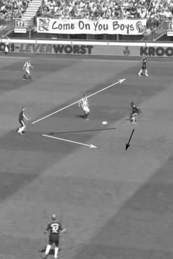 Video’s en sensorenVoor het verzamelen van positiedata zijn twee methoden. De data kan worden verzameld aan de hand van videobeelden of alle spelers kunnen worden voorzien van sensoren waarmee hun positie in tijd en ruimte in kaart wordt gebracht. Beide systemen hebben voor- en nadelen. Lemmink: “Voordeel van video is dat je het tijdens de echte wedstrijd kunt doen bij beide teams en de spelers hebben er geen last van. Nadeel is dat je een geavanceerd camerasysteem nodig hebt waarover de clubs in de Eredivisie niet beschikken. In Engeland beschikken de meeste clubs wel over een dergelijk systeem. Het dragen van sensoren door de spelers heeft als voordeel dat het heel nauwkeurige data oplevert, maar het mag niet tijdens wedstrijden en je wilt de spelers er ook niet mee lastigvallen. Maar de techniek gaat heel snel en waarschijnlijk is het al snel mogelijk om dergelijke technieken bijvoorbeeld in schoenen, scheenbeschermers of shirts te integreren waardoor de spelers er geen last van hebben.”