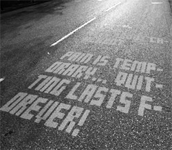 dat de teksten op de weg zijn geplaatst, ontvangt de deelnemer een bericht met