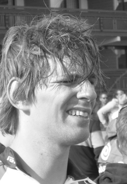 Breeduit lachend kwamen we die eerste keer boven, opgewacht door teamgenoten die ons toch enigszins trots vooruitgesneld waren. Geen tijd voor al te veel bespiegelingen, voorzichtig naar beneden voor de tweede beproeving. De eerste keer had ik niet op mijn lichtste verzet gereden om mijzelf later op de dag nog een cadeautje te kunnen geven. Goed, dat kon ik dus meteen uitpakken. Poeh, wat ging dat zwaar en moeizaam. Waar was mijn soepele tred, mijn rustige ademhaling van twee uur geleden? Een gelletje dan maar. Vergeten hoe smerig dat was. Ik kokhalsde op weg naar bocht 16. In het gedeelte daarna kwam ik een beetje op adem. Mijn benen leken het weer te doen, maar ik werd geconfronteerd met een ander probleem: een slapende rechtervoet die in de fik leek te staan. Ik gooide er een beker water overheen. Dat bluste de brand in zijn geheel niet, maar het feit dat ik er de tegenwoordigheid van geest voor had vond ik positief.