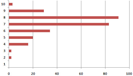 beduidend meer respondenten uitkwamen op een 6 (12%), 5 (7%) of lager (8%) dan