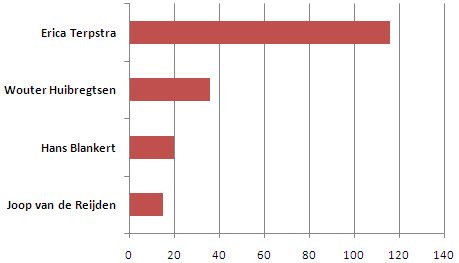 Wouter Huijbregtsen (19%), gevolgd door respectievelijk Hans Blankert (11%) en