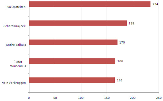 Vorige week (dinsdag 24 november) zijn – in het eerste deel van het enquêteverslag (klik hier) –de nummers 6 tot en met 15 bekend gemaakt. De nummers 1 tot en met 5 vijf zijn hierboven uitputtend aan de orde geweest, maar wie vormen nu in welke volgorde de onderste regionen van de ranglijst? Op plaats 16 staat Jan Rijpstra, vooral bekend als voormalig woordvoerder Sport in de Tweede Kamer voor de VVD en als voormalig voorzitter van de honkbalbond. Na hem volgen respectievelijk Ewald Kist (voormalig bestuursvoorzitter van ING), Ruud Vreeman (voormalig bestuurslid van NOC*NSF en zes jaar geleden als bestuurskandidaat concurrent van Erica Terpstra), Kees Storm (voormalig bestuursvoorzitter Aegon) en op de twintigste plaats de huidige NOC*NSF-directeur Theo Fledderus. Samenvattend volgen hieronder de nummers 1 tot en met 20: