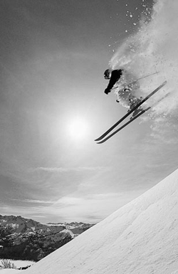 Het voordeel van omhoog klimmen is dat je van dichtbij kunt zien of de sneeuw overal op de wand goed is. Dat is belangrijk, want op de steilste stukken glijdt de extreem steil skiër niet meer door de bochten, maar springt hij van de bergwand af en draait hij in de lucht zijn ski’s 180 graden, om vijf meter lager opnieuw haaks op de helling neer te komen, met zijn ski’s in de andere windrichting. Zou hij de punten van zijn ski’s ook maar even naar het dal draaien, dan gaat hij direct veel te snel.